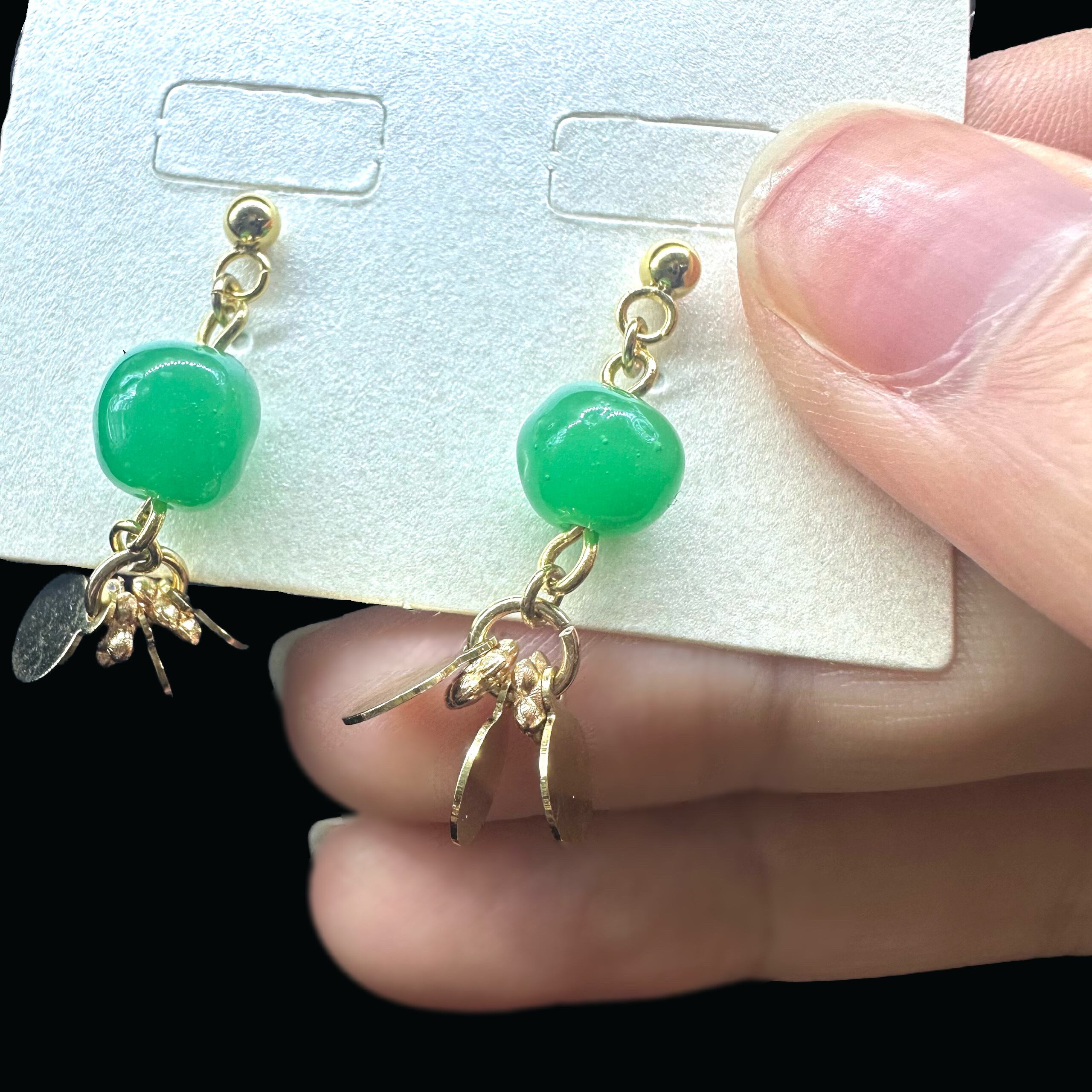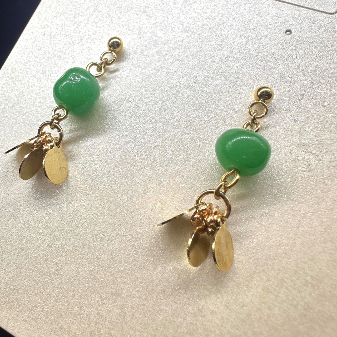 春の芽吹きのようなミルキーグリーンカラーの日本製アンティークビーズを主役にしたピアス。