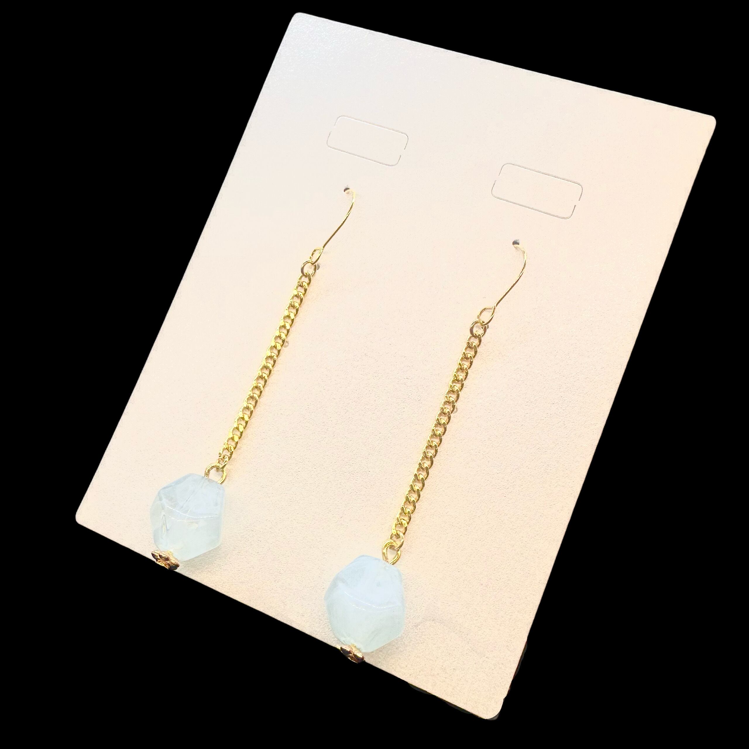 氷のような不規則シェイプのビーズが可愛い、揺れるフックピアス。