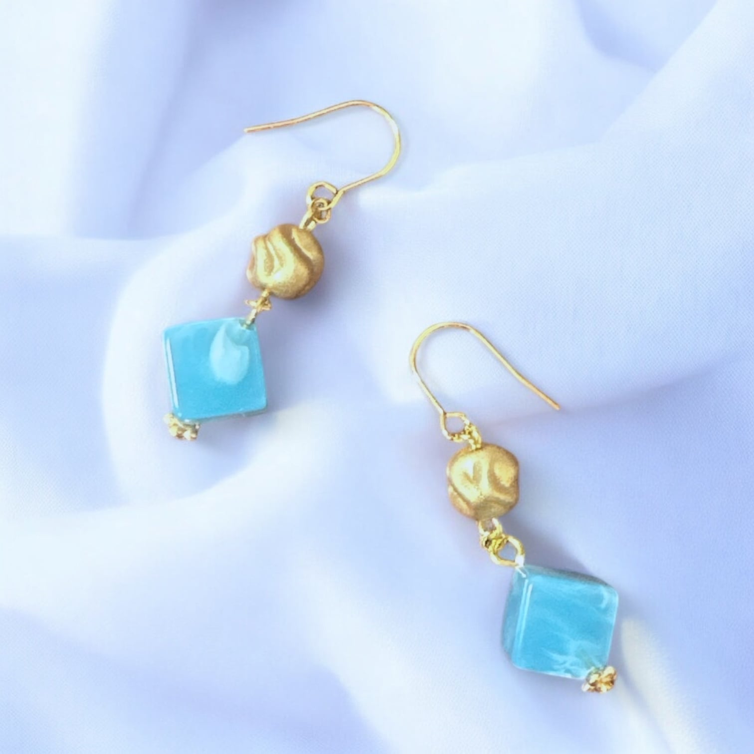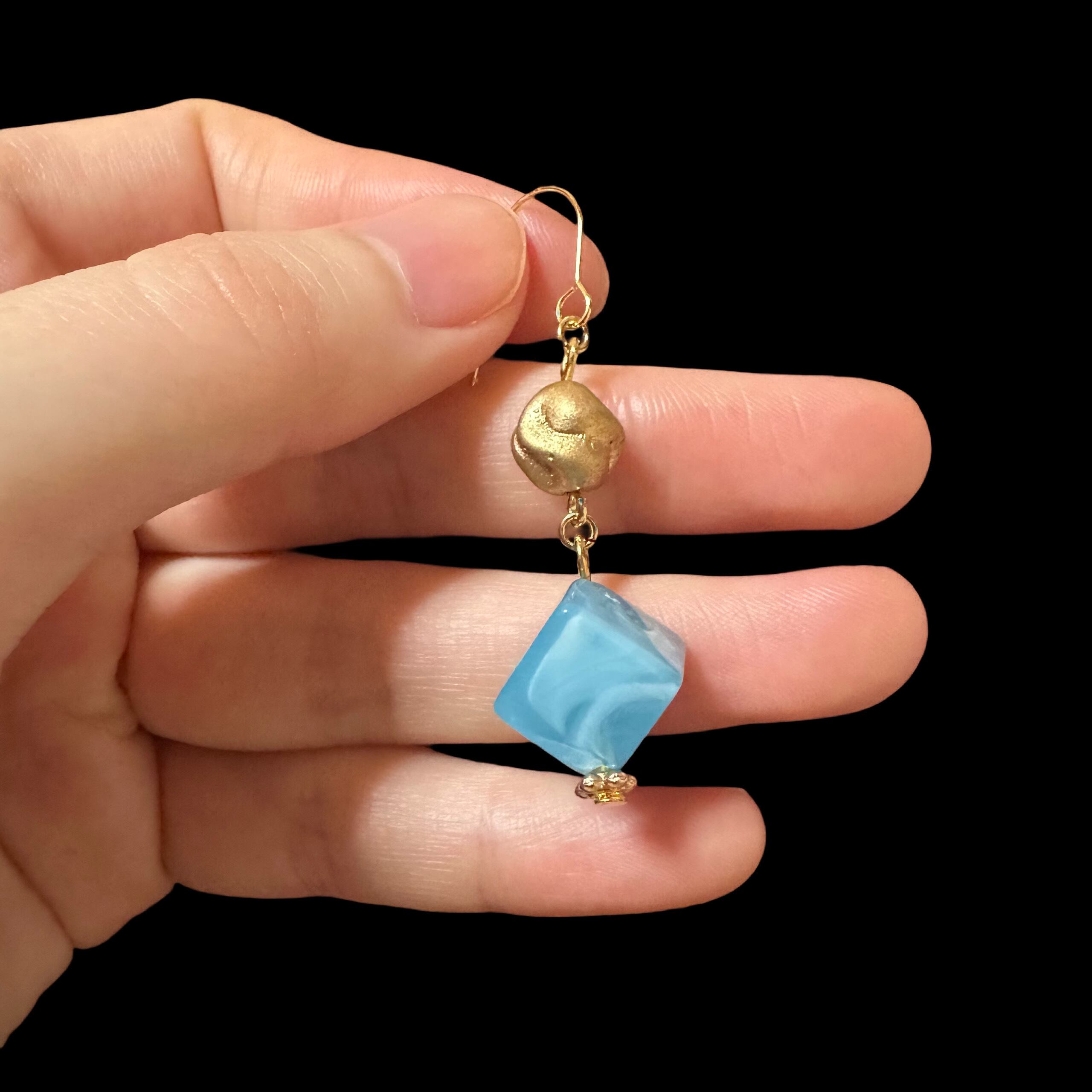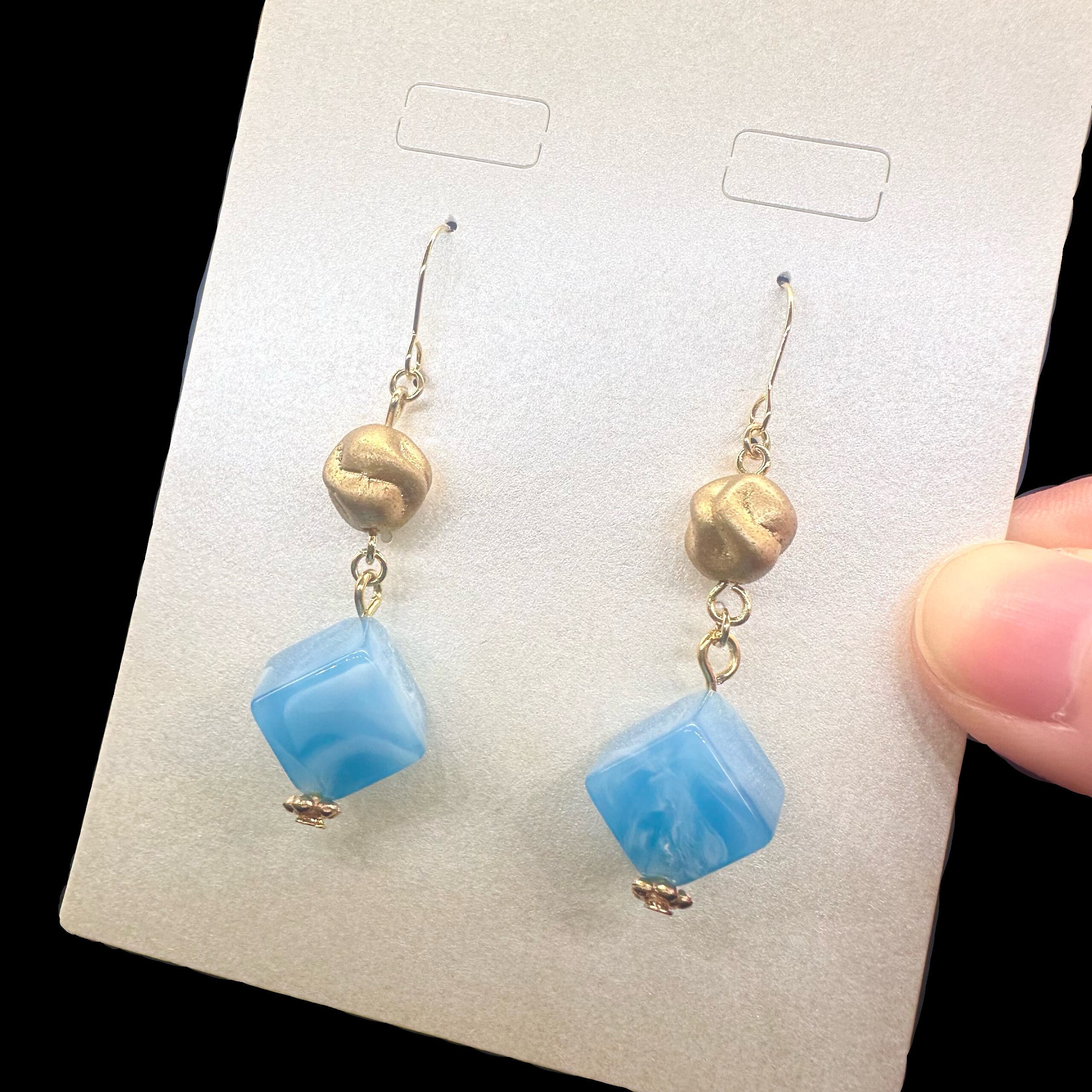 異なる印象をもつシルエットのパーツを組み合わせてエレガントに仕上げたフックピアス。