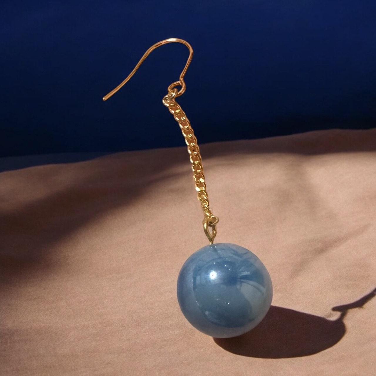ブルーとゴールドのマーブルカラーが美しい、揺れるピアスです。